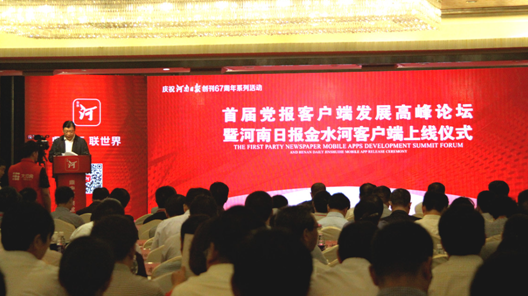 为贯彻落实中共中央政治局委员、中央书记处书记、中宣部部长刘奇葆河南调研讲话精神,深入推进媒体的融合发展,首届党报客户端发展高峰论坛暨河南日报金水河客户端上线仪式于6月1日上午在郑州大河锦江酒店举行,河南省副省长张广智出席活动并作重要讲话。