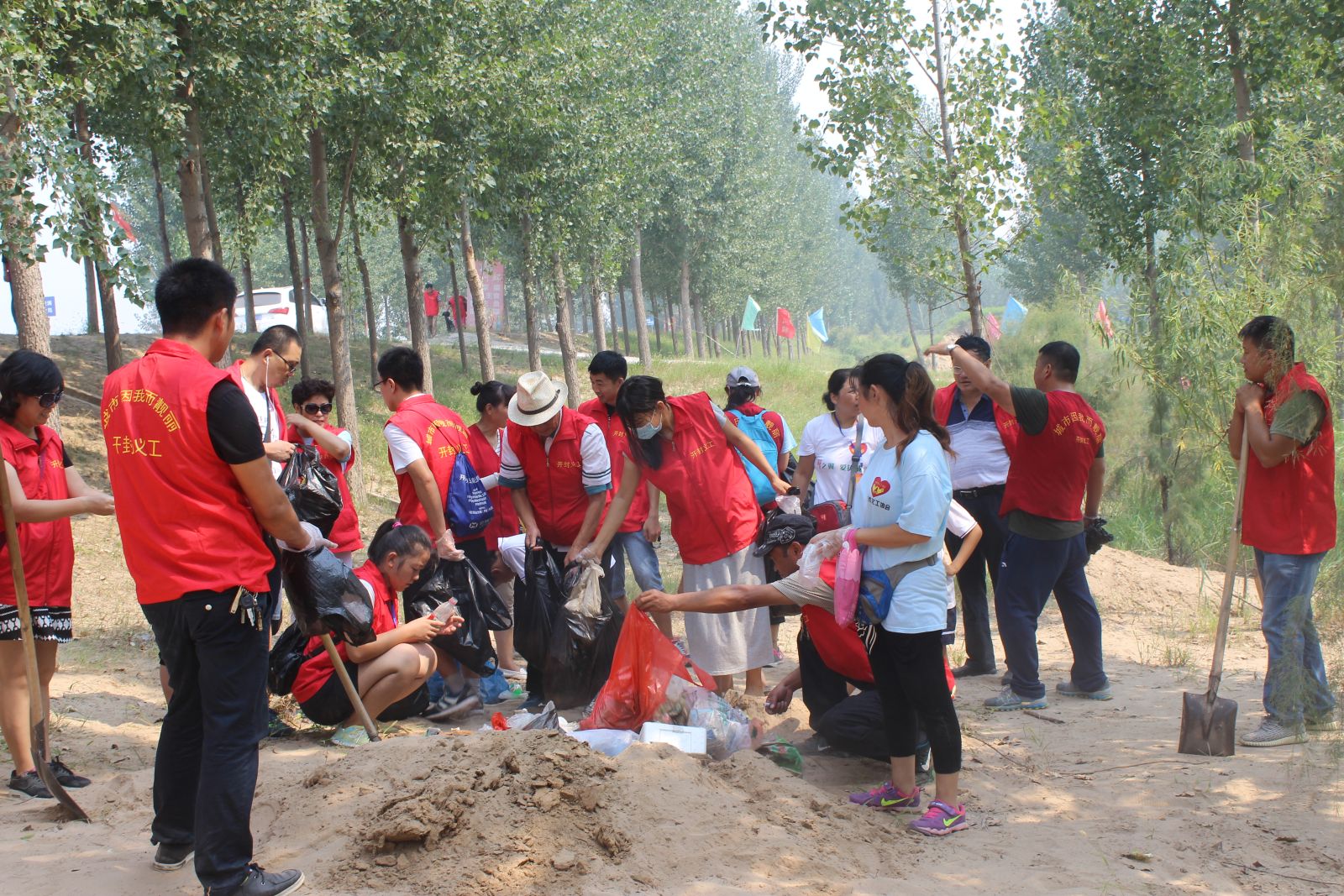 活动中,义工们头顶烈日相约在黄河岸边,为游览区大扫除,不少义工为了教育自己的下一代,带着自己的孩子们一起参加这次活动,从小培养他们的环境保护意识。义工们拿着捡拾垃圾的工具,将游览区内废弃的饮料瓶、食品包装袋、废纸箱等等垃圾捡拾的干干净净,然后挖坑焚烧后掩埋,做到了无公害化处理。义工们也呼吁来此游玩的游客们除了脚印,把自己带来的垃圾带走,自觉地爱护环境卫生。