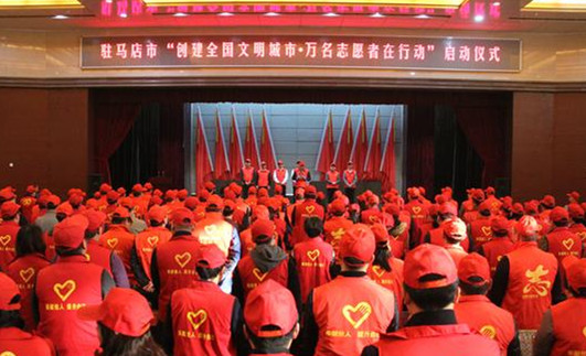 市委书记余学友,市委副书记、市长陈星,市人大常委会主任张宪中,市政协主席刘军甫,市人大常委会副主任王志华,副市长王明威出席启动仪式。市委书记余学友宣布“创建全国文明城市·万名志愿者在行动”活动启动。市委副书记、市长陈星在启动仪式上讲话,号召广大文明志愿者立即行动起来,积极参与到创建全国文明城市志愿服务行动中,为打造富强、文明、平安、美丽驻马店作出新的更大的贡献。