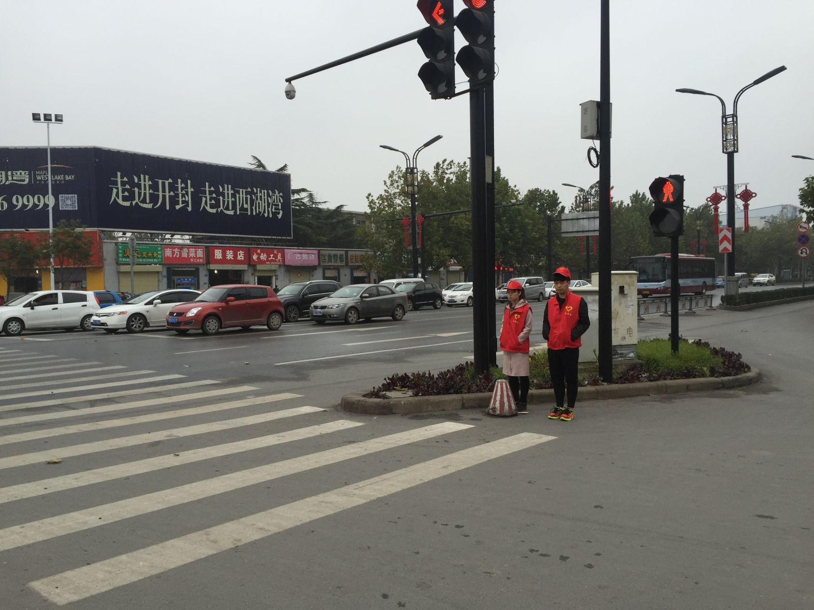 为深化文明城市建设,提升城市文明程度,为保证市民的正常出行,2016年10月22日上午,开封市社科联8名文明交通志愿者到医药大厦岗开展文明交通志愿服务,对行人闯红灯、乱穿马路、非机动车逆行、违规载客、乱停乱放等不文明行为进行劝导。