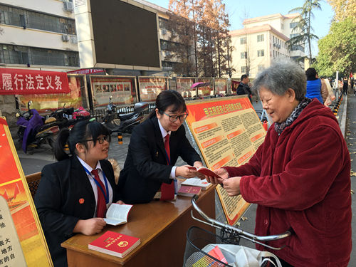 12月4日是第三个“国家宪法日”,南阳市法学会发动团体会员单位力量,组织相关法律工作者走上街头,积极开展国家宪法日宣传活动。