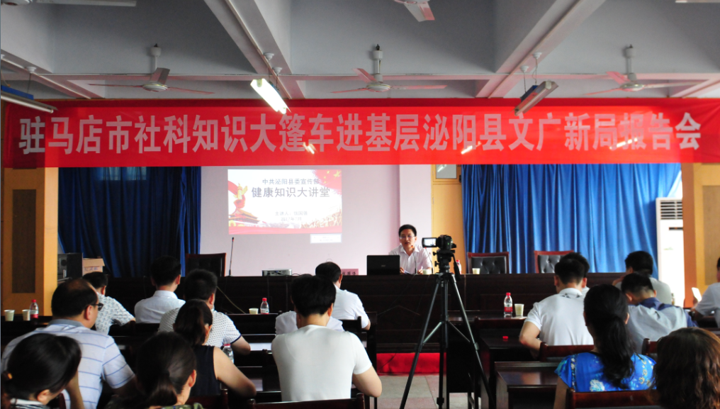 7月6日上午,驻马店市社科联邀请河南省社科理论宣讲志愿者、驻马店市“151”天中科技创新人才、医学博士、黄淮学院护理学院副院长、副教授钱国强同志来到泌阳县文广新局,以如何培养良好的健康素养为主题,为泌阳县宣传文化系统100余名干部职工进行健康指导。市社科联副调研员栗贯清,泌阳县委宣传部副部长杨立稳、田留洋聆听了报告。泌阳县社科联主席李霞主持报告会。