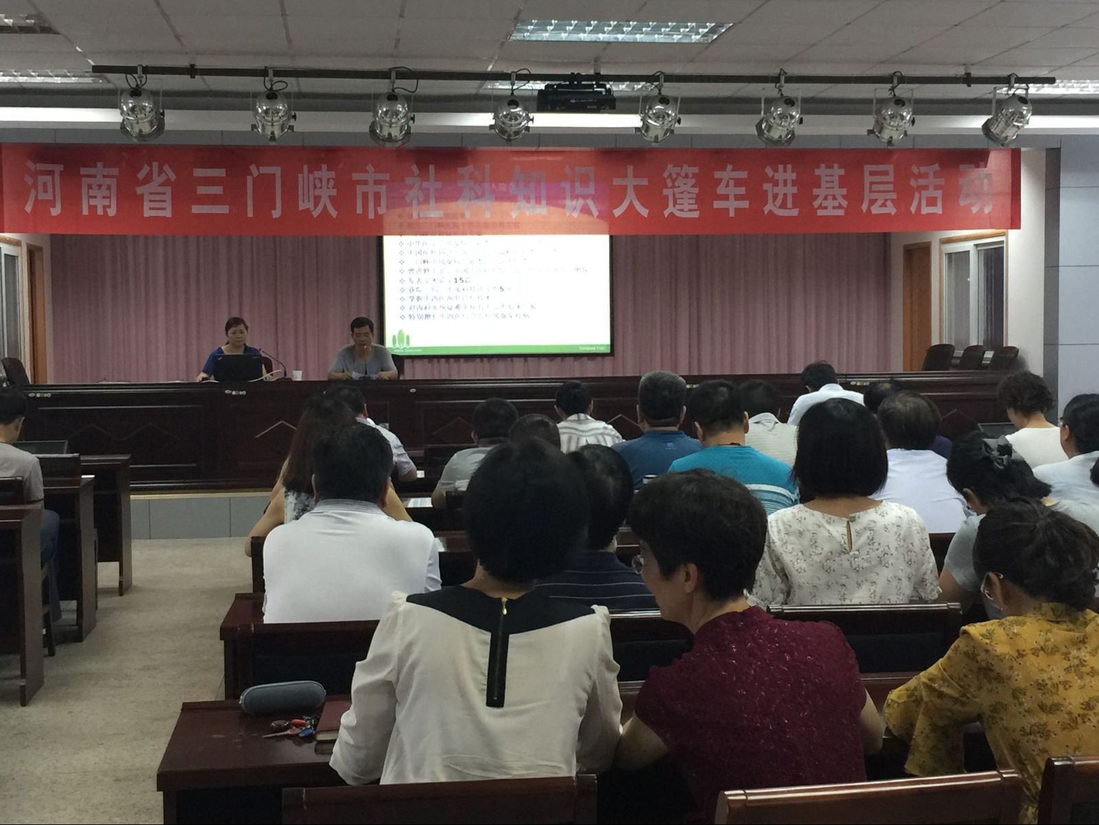 2017年7月7日下午,三门峡市“社科知识大篷车进基层”活动走进市粮食局,三门峡市首届社科专家、三门峡黄河医院中西医结合科主任刘秀琴为广大干部职工讲述了夏季养生的相关知识,市粮食局机关职工和有关单位共40余人参加了此次活动。