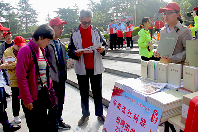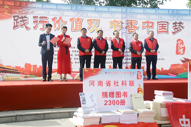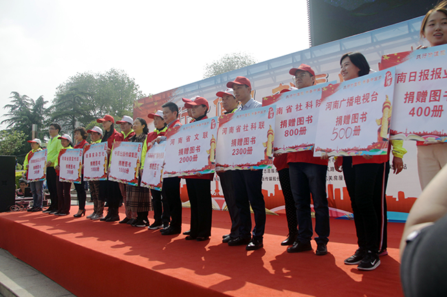 4月23日,在第24个“世界读书日”来临之际,为弘扬社会主义核心价值观,倡导全民阅读、构建书香社会,增强宣传思想战线干部的脚力、眼力、脑力、笔力,luck18(中国)体育志愿服务队联合省委宣传部、省委网信办、河南日报报业集团、省文化和旅游厅、省广播电视局、省广播电视台、省社科院、中原出版传媒集团、省文联等志愿服务队,在郑州紫荆山公园共同举办了以“践行价值观,书香中国梦”为主题的世界读书日活动。