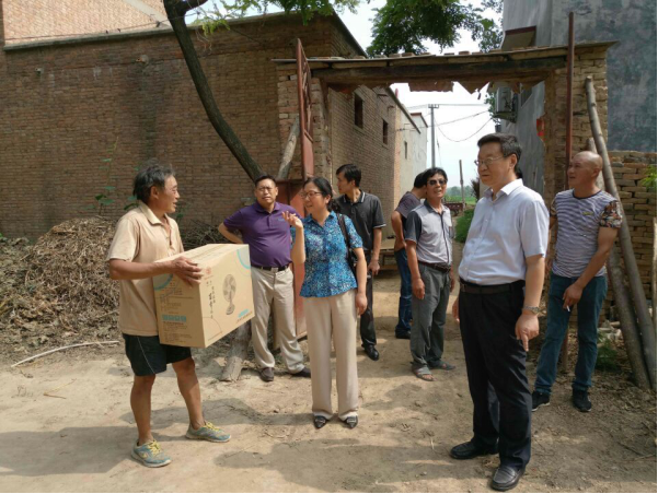 7月8日,开封市社科联主席张琳、副主席吴良会同市史志办主任曹景宪、副主任韩红军及驻村工作队成员一行8人冒着酷暑,赶赴通许县长智镇老王庄村开展“精准扶贫在行动 爱心捐赠显真情”活动,为当地贫困户送去风扇42台。长智镇党委副书记郭飞陪同。