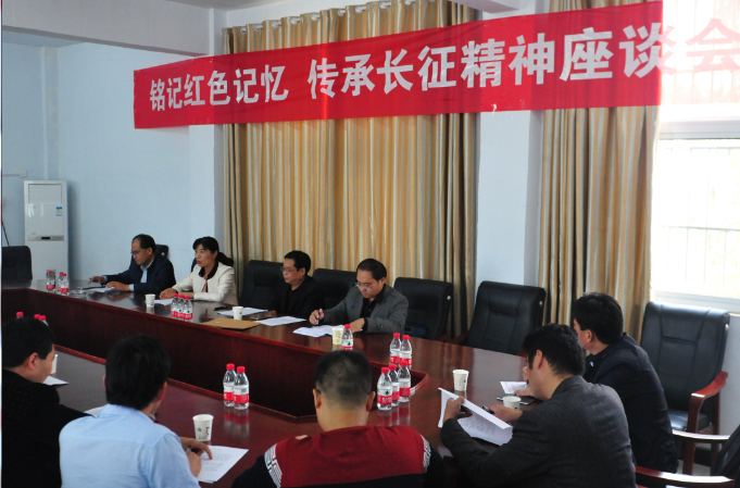 座谈会上,泌阳县委党史研究室副主任冯建海首先以“铭记红色记忆 传承长征精神”主题,从中国工农红军25军成立、创建根据地、粉碎敌人两次反“围剿”、罗山县何家冲西进长征背景及红25军途径泌阳县实况进行了生动讲述。然后,与会人员分别就铭记红色记忆,坚定理想信念,传承长征精神进行了座谈交流发言。纷纷表示:将以纪念长征胜利80周年为契机,在新的时代不忘先烈们流血牺牲,铭记红军丰功伟绩,传承伟大长征精神,走好新的长征路,立足本职,努力工作,为全面建成小康社会贡献力量。