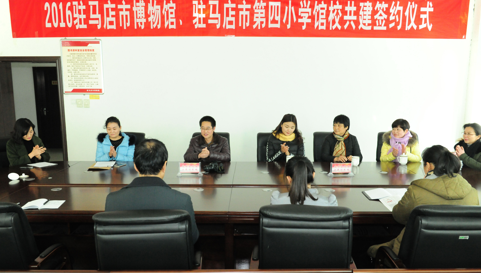 11月底至12月初,驻马店市博物馆相继与市第二十九小学、市第八小学、市第四小学、市第二初级中学等学校共建馆校共建基地,并举行馆校共建签约仪式。驻马店市博物馆与中小学校馆校共建基地的建立,是一次“共创和谐”的馆校合作,今后将有更丰富地社会科学知识及天中文化走进校园,更多的青少年走进博物馆这个第二课堂。驻马店市博物馆将提供各种优质资源,搭建更好地平台,服务学生、服务学校,并希望借助学校的教师资源和学生资源,推进市博物馆的建设发展,为繁荣发展社会科学普及工作做出积极的贡献。