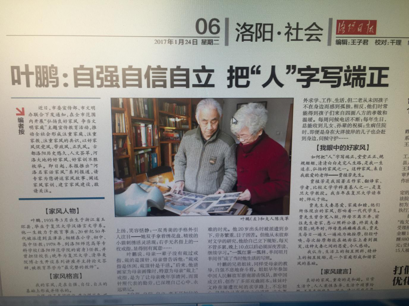 为弘扬河洛大地的好家风、好家训,从1月24日起,洛阳市社科联、洛阳日报联合推出“河洛名家话家风”系列报道,先后邀请叶鹏、孙致礼、马凌、韩洪涛、安锋等洛阳人文社科专家,为读者讲述家风故事、阐述家风家训、建言家风建设,引发广大读者强烈关注,纷纷要求继续刊发更多的洛阳名家家风故事。