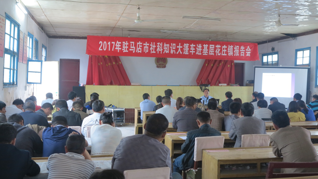 5月11日下午,驻马店市社科联邀请市社科普及宣讲团成员、驻马店职业技术学院招生就业处副处长、副教授魏耀辉,来到遂平县花庄镇,以“践行核心价值观,塑造阳光心态,创造幸福生活”为主题,为遂平县花庄镇干部职工和村委支部书记、主任60余人做了一场精彩的报告会,市社科联副调研员栗贯清、遂平县社科联主席郑卫东出席报告会。
