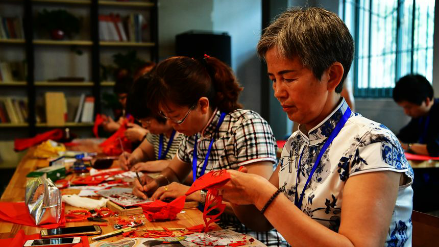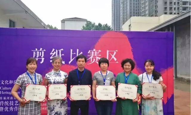 6月8日,由河南省文化厅主办,河南省非物质文化遗产保护中心、郑州轻工业学院承办的“首届河南省传统技艺大赛暨优秀作品展”在郑州轻工业学院举行。洛阳市剪纸艺术研究会会长、洛阳非物质文化遗产项目(剪纸艺术)代表性传承人王飞等6名研究会成员代表洛阳市参赛。