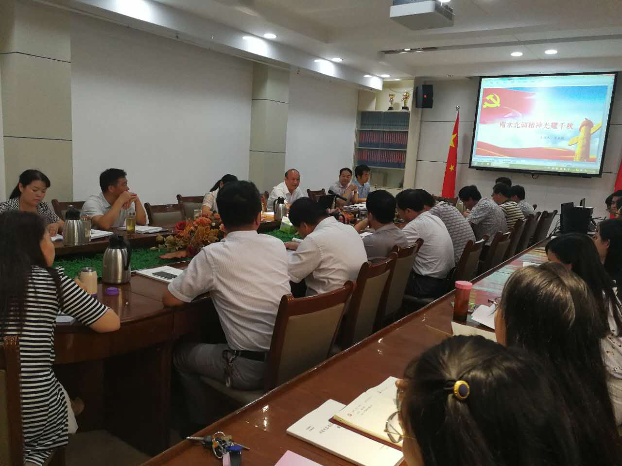 7月14日,为推进“两学一做”学习教育常态化制度化,发挥领导干部示范带头作用,南阳市社科联联合市委宣传部机关开展领导干部讲党课活动,南阳市委宣传部景文栓同志以《南水北调精神光耀千秋》为题,为大家带来了一场精彩纷呈的报告。南阳市社科联机关全体同志参加。