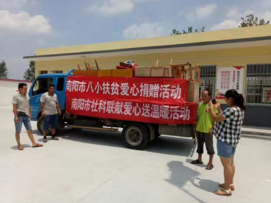 再穷不能穷教育,为进一步提高贫困村小学基础设施水平,在南阳市社科联驻桐寨铺镇周庄村第一书记、工作队的多方奔走、沟通协调下,7月17日上午,成功联系到南阳市第八小学,为周庄村小学捐赠学生课桌60套。工作人员冒着高温酷暑,将新捐赠的书桌椅搬进新修建的教学楼。