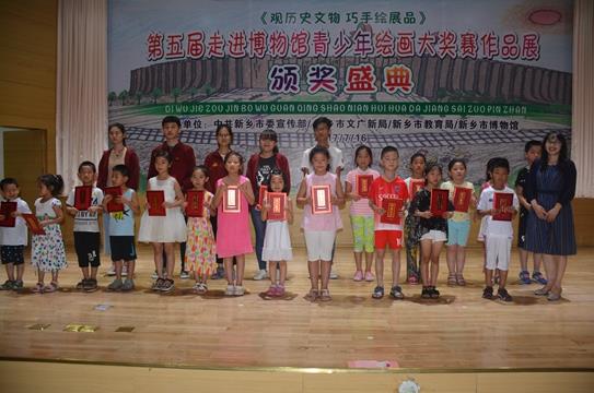 7月16日上午,由中共新乡市委宣传部、新乡市文广新局、新乡市教育局和新乡市博物馆共同举办的《观历史文物 巧手绘展品》第五届走进博物馆青少年绘画大奖赛作品展颁奖典礼,在新乡市博物馆多功能厅成功举办。新乡市文广新局副局长张太程、市教育局体卫艺科科长梁庆岭、市博物馆馆长牛万新、副馆长姚香勤、社教部主任李江等相关领导莅临现场,并为获奖师生颁奖。