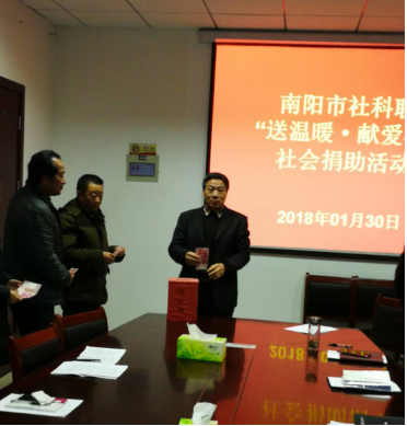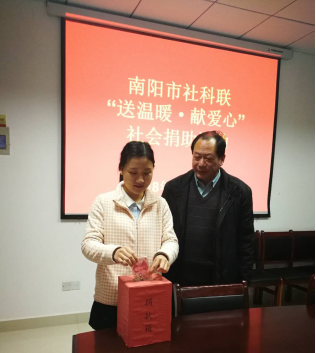 1月30日,南阳市社科联积极响应南阳市委市政府关于春节期间关心贫困群众的号召,组织开展“送温暖·献爱心”捐助活动。机关全体同志踊跃参加,尽己所能为困难群众奉献爱心,帮他们过上一个安稳幸福的春节。