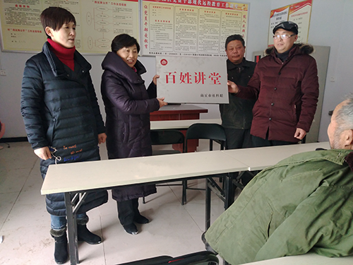 “百姓讲堂”宣讲活动以党的十九大精神和习近平新时代中国特色社会主义思想为指导,以提升群众思想道德修养和文明素质为核心,面向基层,服务群众,贴近需求,贴近实际,突出针对性和通俗性。讲堂和商丘市委“三·五”基层工作日活动相结合,和文明城全域创建相结合,和美丽乡村建设活动相结合,是商丘市社科联组织开展的大众化非学术性讲座。为保证活动长期有效开展,商丘市先后出台了《商丘市社科联开展“百姓讲堂”活动实施方案》和《关于做好社科理论宣讲志愿者推荐工作的通知》,在全市范围内招募社科理论宣讲志愿者,逐步培育一支面向基层,面向群众,服水土、接地气的社科理论宣讲志愿者队伍,探索打造一个符合基层实际,易于群众接受的活动载体,让商丘“百姓讲堂”发展成为群众自愿自觉参与的集体活动,以营造想百姓所想、解百姓所忧、为百姓服务的良好氛围。