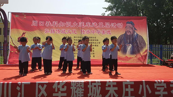5月23日上午,由周口市社科联主办,周口市孝和文化研究会、川汇区华耀城朱庄小学承办的的社科知识大篷车进基层活动走进华耀城办事处朱庄小学,给这里的师生带来了一次弘扬中华优秀传统文化、传承中华美德的文化专场活动。