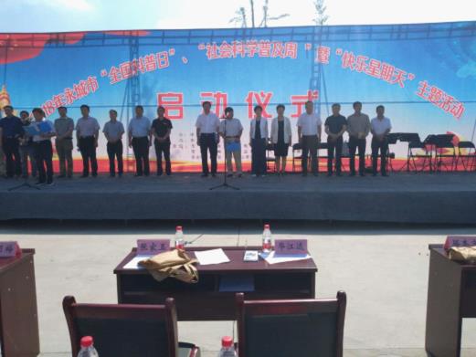 仪式由骆本京主持,毕江远作讲话,张家玉宣布2018年永城市“全国科普日”“社会科学普及周”暨“快乐星期天”主题活动正式启动。
