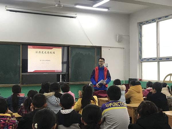 11月16日,驻马店社科普及基地——市博物馆馆校共建系列活动之流动博物馆进校园活动,走进驻马店市第二十九小学,市博物馆的志愿服务人员为孩子们讲述了馆藏文物及天中地区悠久的历史文化知识,给孩子们上了一堂丰富多彩的“文物历史课”。