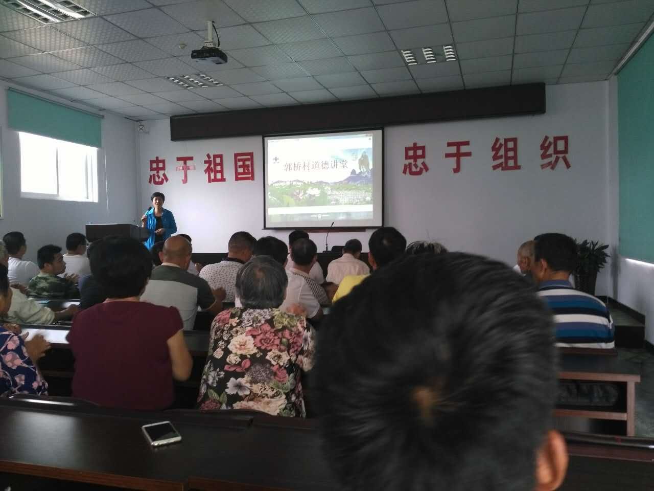 郭宝锋在授课中详细讲解了经济技术开发区罗庄社区开展弘扬中华优秀传统文化普及活动一年多来村容村貌及居民精神面貌发生的巨大变化,他说,罗庄社区从过去的老上访村到去年的零上访村,优秀传统文化道德讲堂普及活动起了很大很好的作用。许多村民说是传统文化改变了自己过去许多不利于社会不利于他人的看法和做法,改变了自己的价值观,从内心深处愿意做一个有道德的人、做一个善良的人、做一个无私奉献的人。目前,在罗庄社区已集聚了一大批弘扬传统文化的志愿者,大家都是学习传统文化的受益者和传播者,他们当中有的为活动主动捐款70万元。罗庄的经验告诉大家,弘扬传统文化可以引得一方的社会风气向好的方向发展。郭桥社区要学习罗庄社区这方面的经验,组织好7天的培训学习,为建设美丽家园做出积极努力。