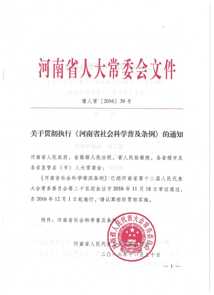 关于贯彻执行《河南省社会科学普及条例》的通知