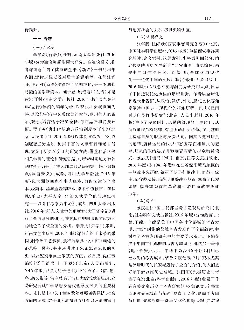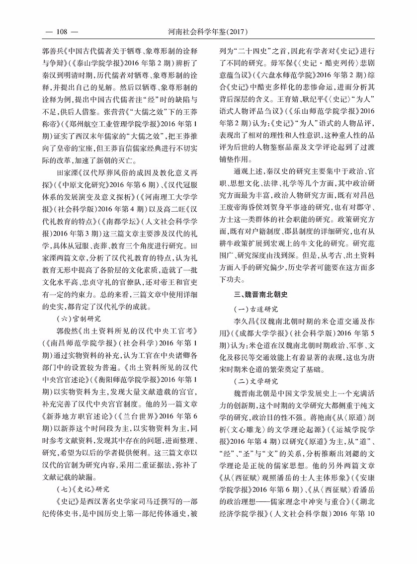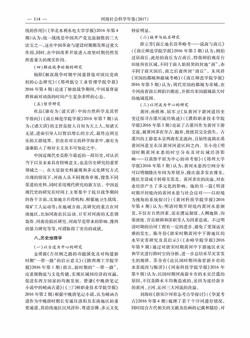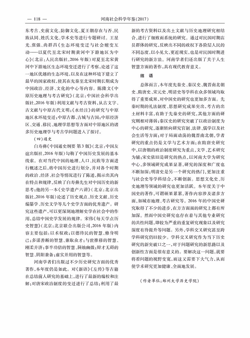 2016年度河南省历史学研究综述