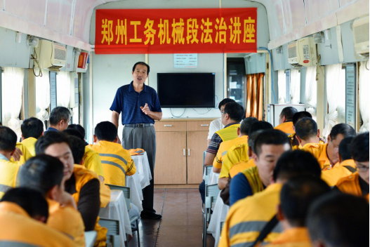 为进一步加强职工法治教育,提高法律意识,保障安全生产持续稳定,6月1日下午,郑州分会七五普法讲师团成员郑州分会副会长刘培星、郑州铁路公安处消防支队孙贵新副支队长,走进郑州工务机械段在长垣车站的宿营车驻地,为来自该段3个车间的40余名干部职工上了一堂生动的法治教育课。