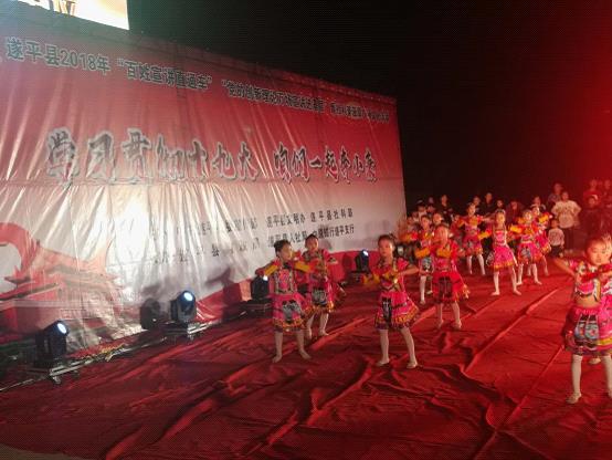 此次广场文化演出活动,以“学习贯彻十九大 争做出彩河南人”为主题,主要节目有舞蹈《苗家板凳舞起来》、小合唱《小白羚》、女声独唱《中国进入新时代》、豫剧《一道道水来一道道山》、歌伴舞《祝福祖国》等,节目形式多样,演员有涵盖儿童、青年、老年各个年龄阶段,用美妙的歌声和优美的舞蹈为遂平县的父老乡亲送上一场文化盛宴,吸引许多群众前来观看。演出人员用贴合百姓的语言,激情澎湃的讲解,赢得了现场观众的阵阵掌声,让大家感受到了祖国的日益强大,感受到了党和国家对人民群众的关心关怀和一起致富奔小康所做的不懈努力。