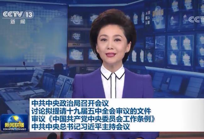 中共中央政治局召开会议 讨论拟提请十九届五中全会审议的文件 审议《中国共产党中央委员会工作条例》中共中央总书记习近平主持会议